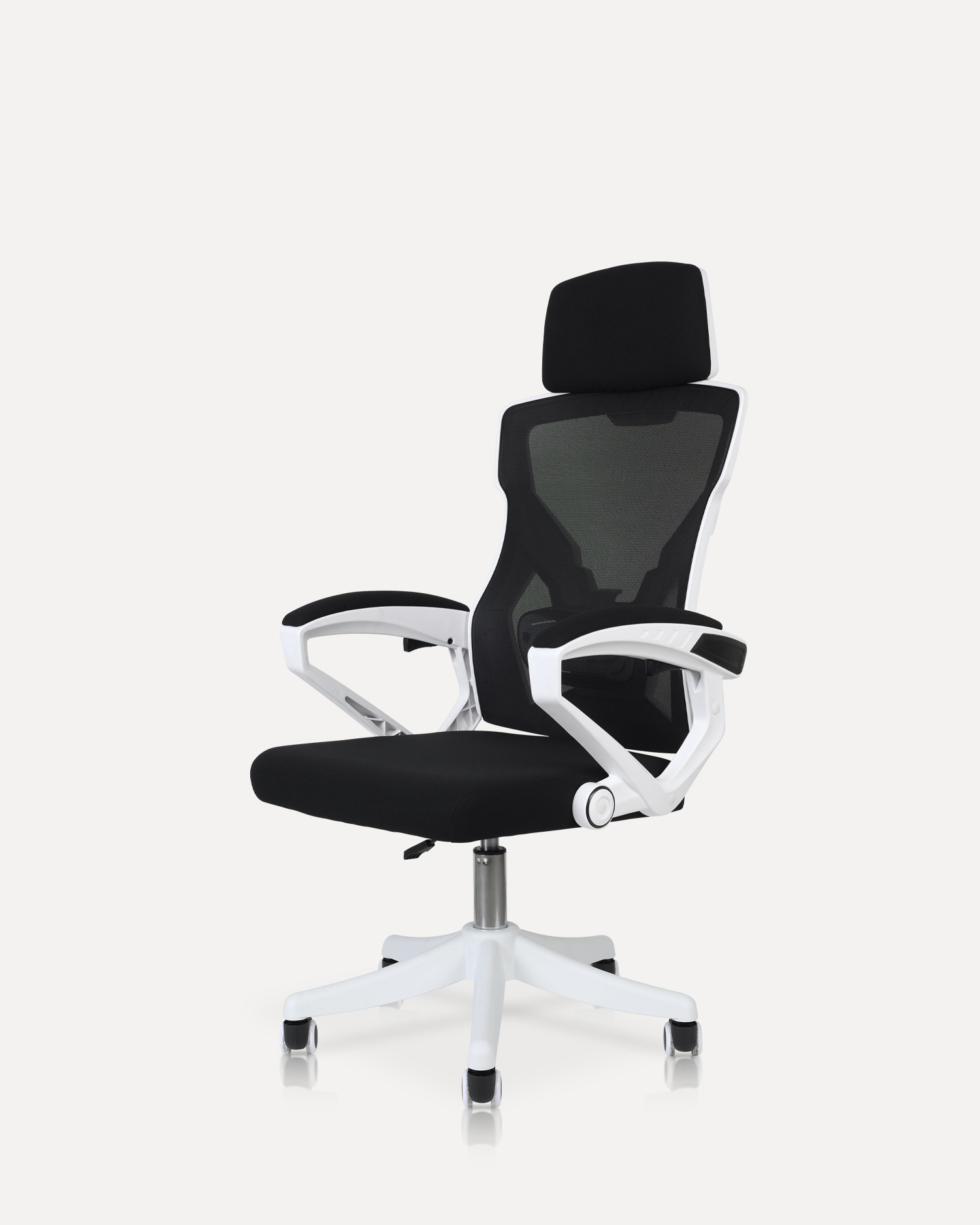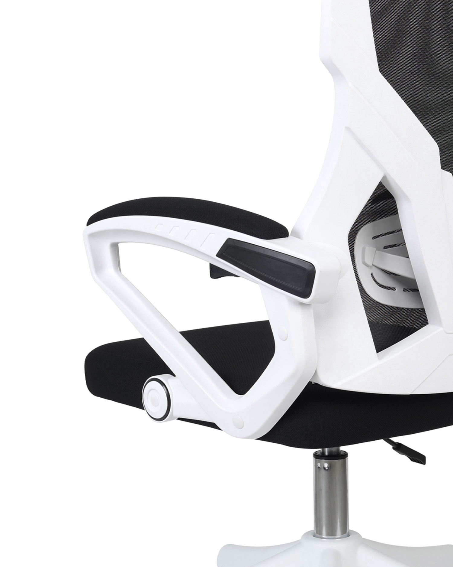 - This office chair is designed with a sleek black-and-white contrast that brings a contemporary edge to any workspace. The streamlined frame and breathable mesh backrest not only elevate its style but also provide lasting comfort throughout long hours of work.