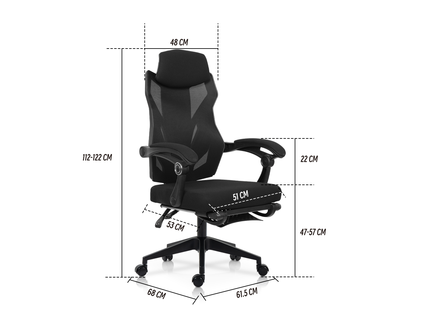- Seat: PP, mesh, plywood, foam