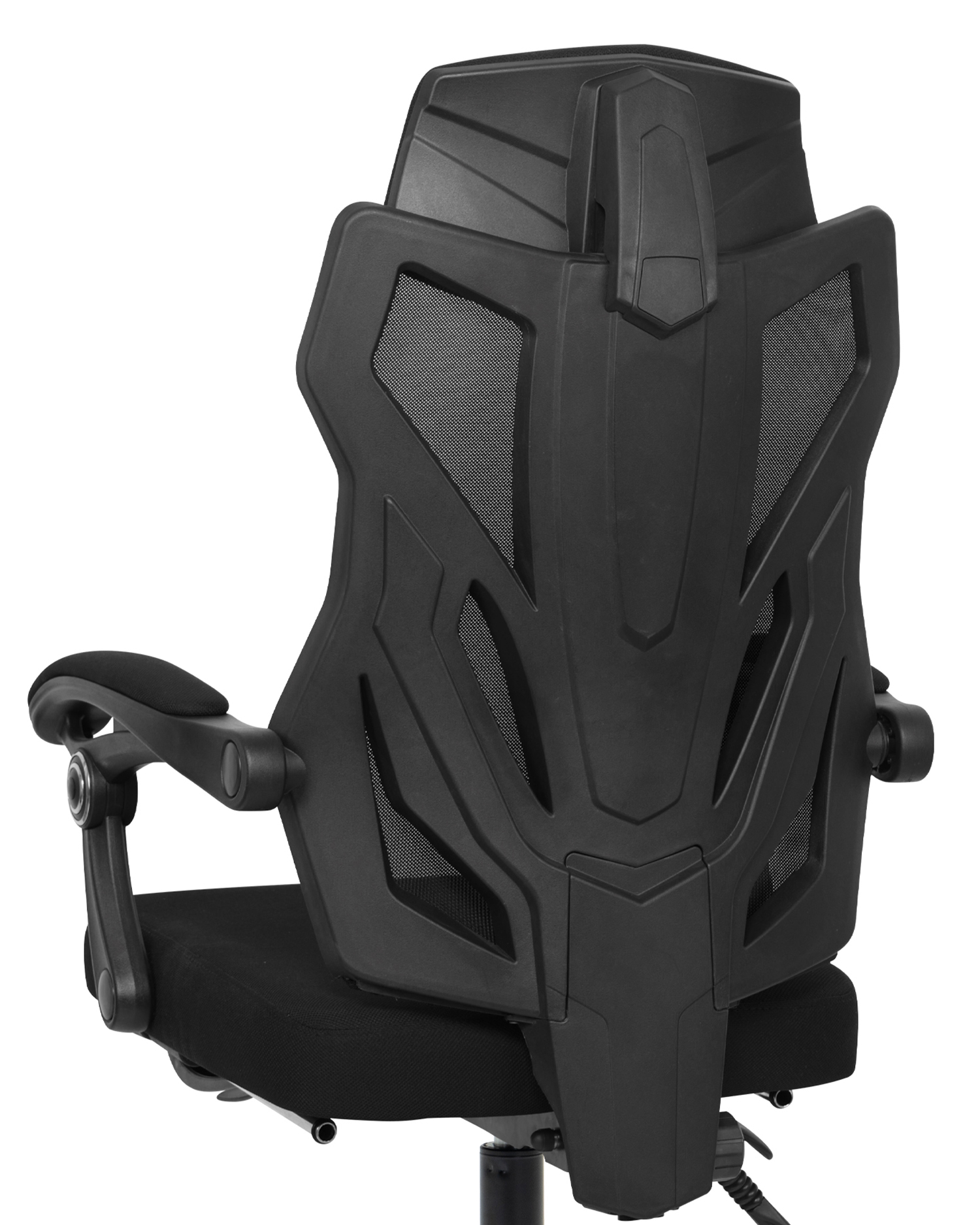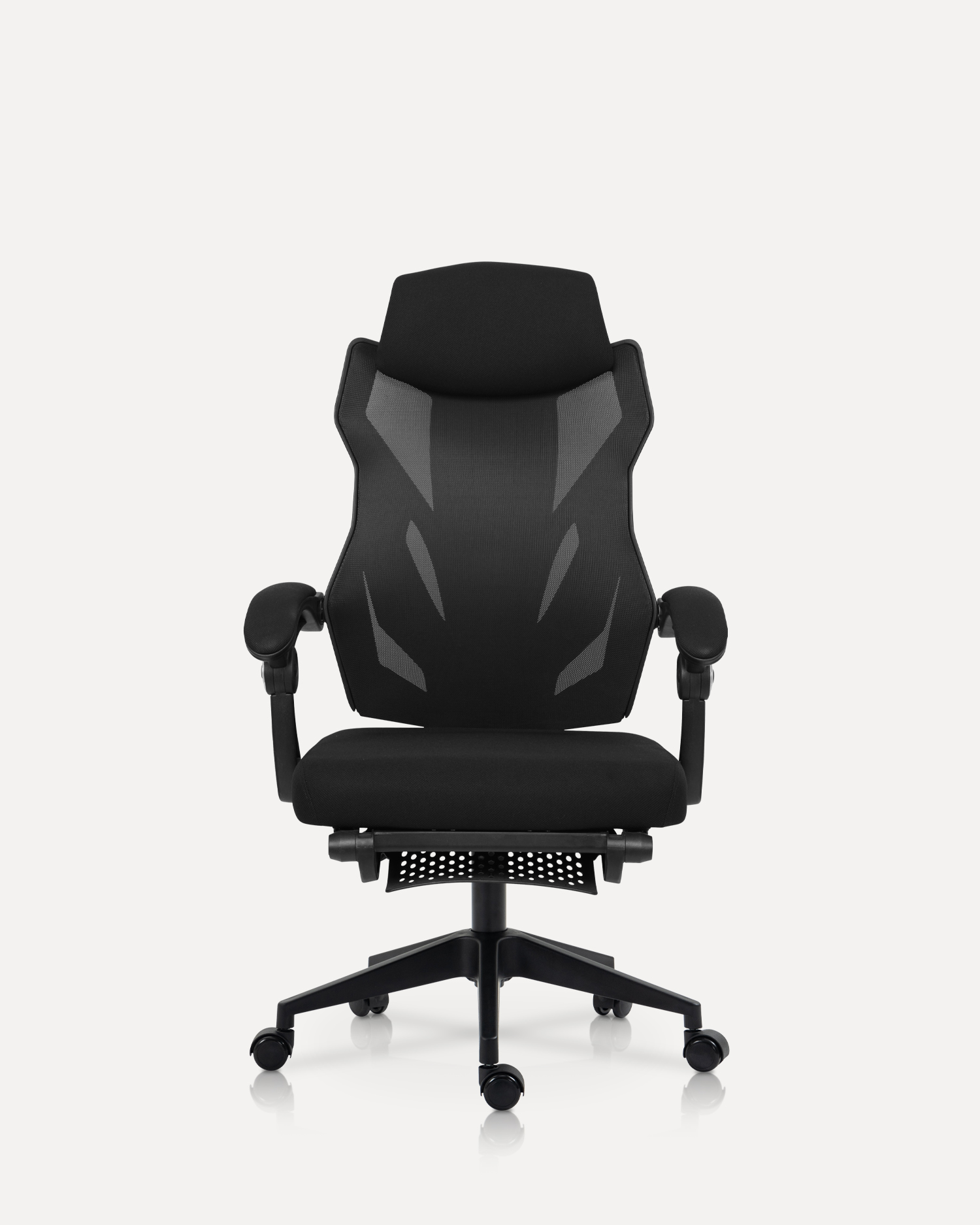 - This modern office chair combines both style and comfort, designed for those who seek an enhanced seating experience. The high-back design offers robust support, particularly for your neck and shoulders, while the sleek, contoured mesh backrest provides breathable ventilation for prolonged sitting sessions. With its striking geometric pattern, this chair offers not only ergonomic support but also a unique aesthetic that adds a touch of sophistication to your workspace.