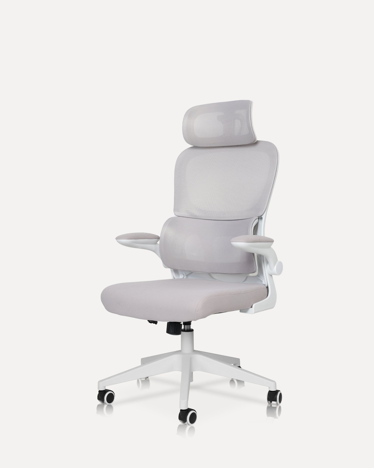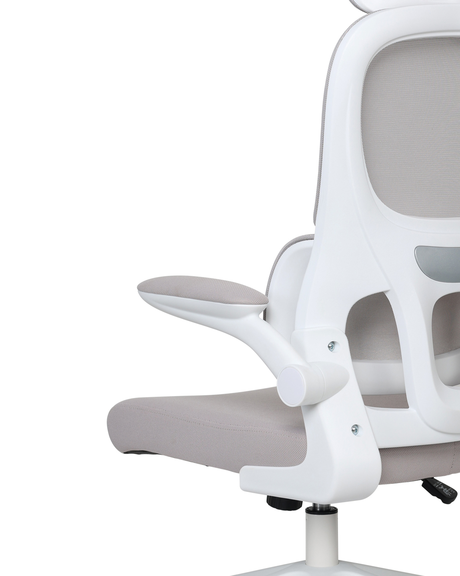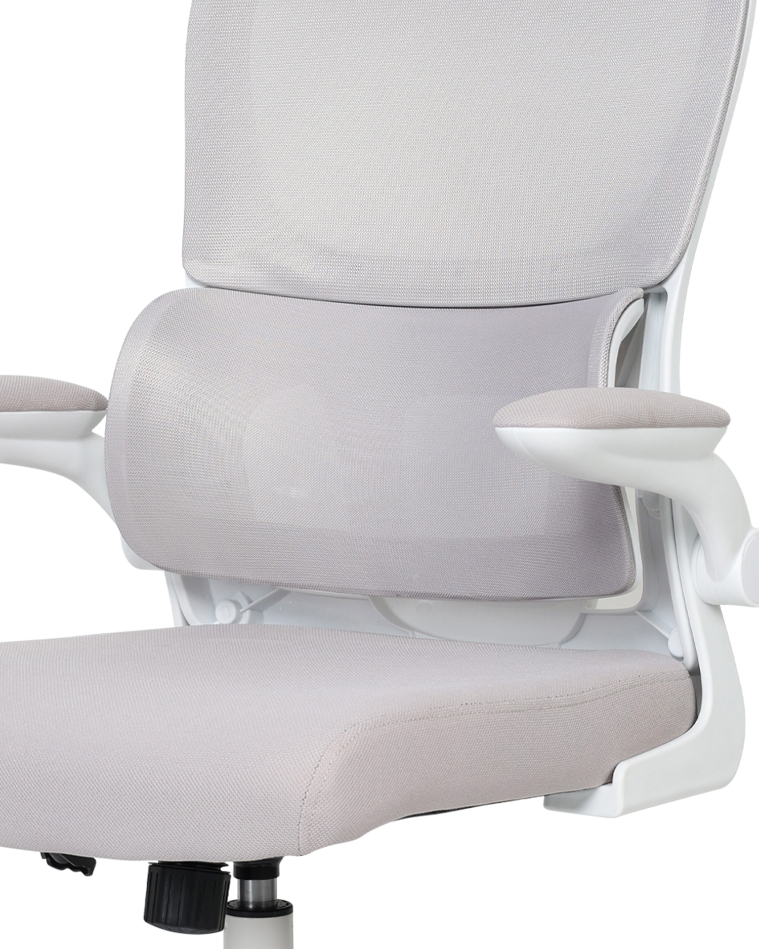- Featuring a breathable mesh back, adjustable headrest, and segmented lumbar support, this chair is crafted to encourage healthy posture throughout the day. The padded seat ensures comfort during long working hours, while the foldable armrests add flexibility for different seating preferences.