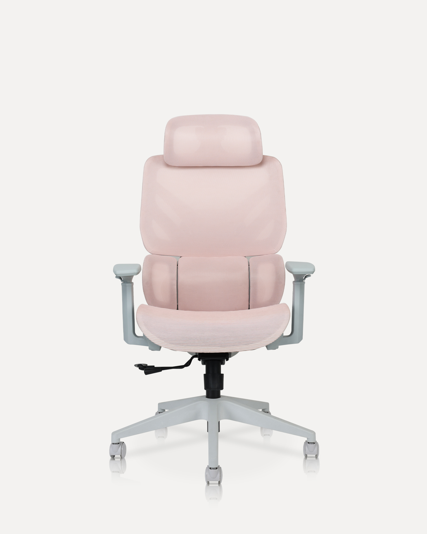 - Stands out with its soft pink tone and sleek silhouette, bringing a fresh and stylish touch to any workspace. Its contemporary look perfectly balances professionalism with a hint of personality, making it an excellent choice for both home and office settings.