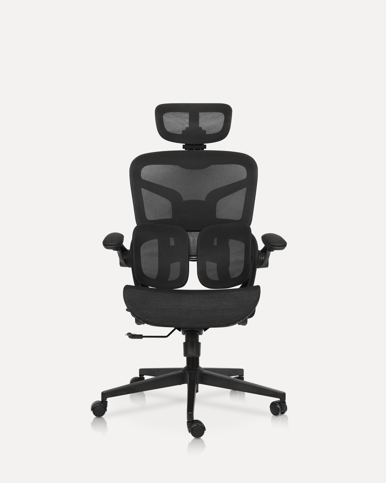 - Designed to provide maximum comfort and support for long working hours. Featuring a breathable mesh backrest, it ensures optimal airflow, helping to keep you cool and comfortable throughout the day. The adjustable headrest and lumbar support allow you to customize the chair to fit your body’s contours, promoting good posture and reducing strain on your neck and lower back.